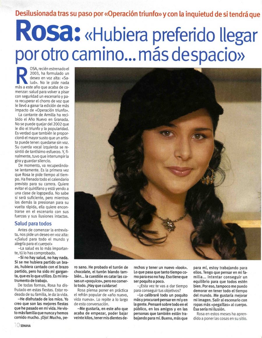 Rosa, desilusionada tras su paso por "OT"Semana08/01/2003Escaneada por Rosamania
