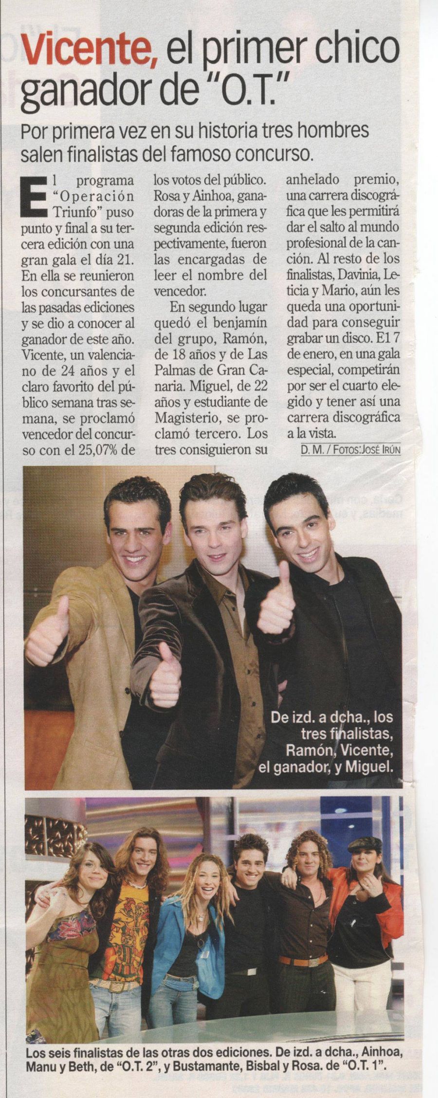 Vicente, el primer chico ganador de "O.T."Diez Minutos09/01/2004Escaneada por Rosamania