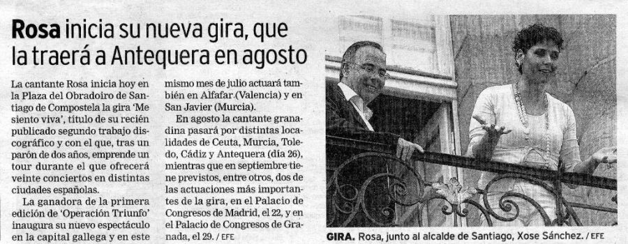 Rosa inicia su nueva gira, que la traerá a Antequera en agostoSur14/07/2006Escaneada por Rosamania
