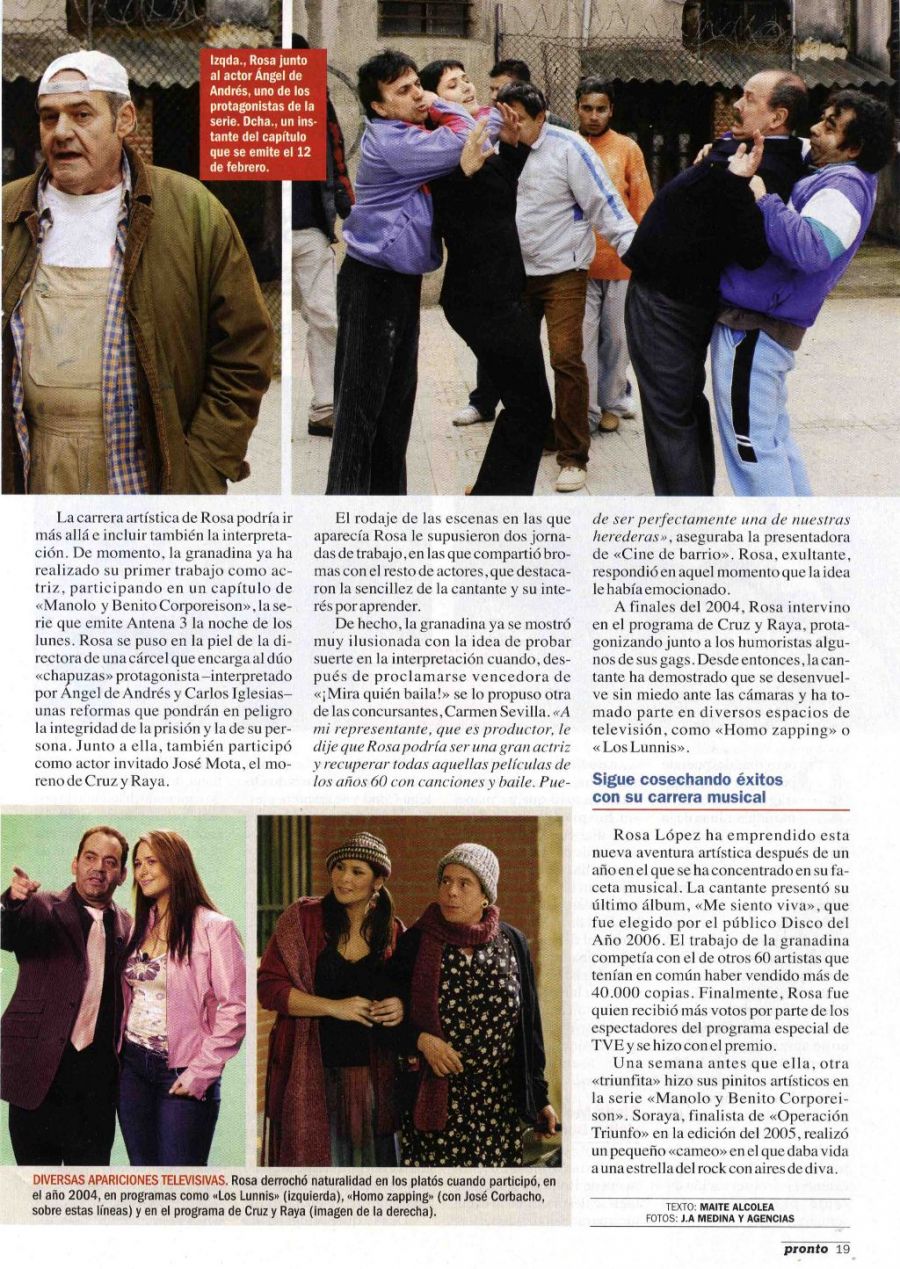 Rosa, ahora actriz en una serie de televisiónPronto17/02/2007Escaneada por Rosamania
